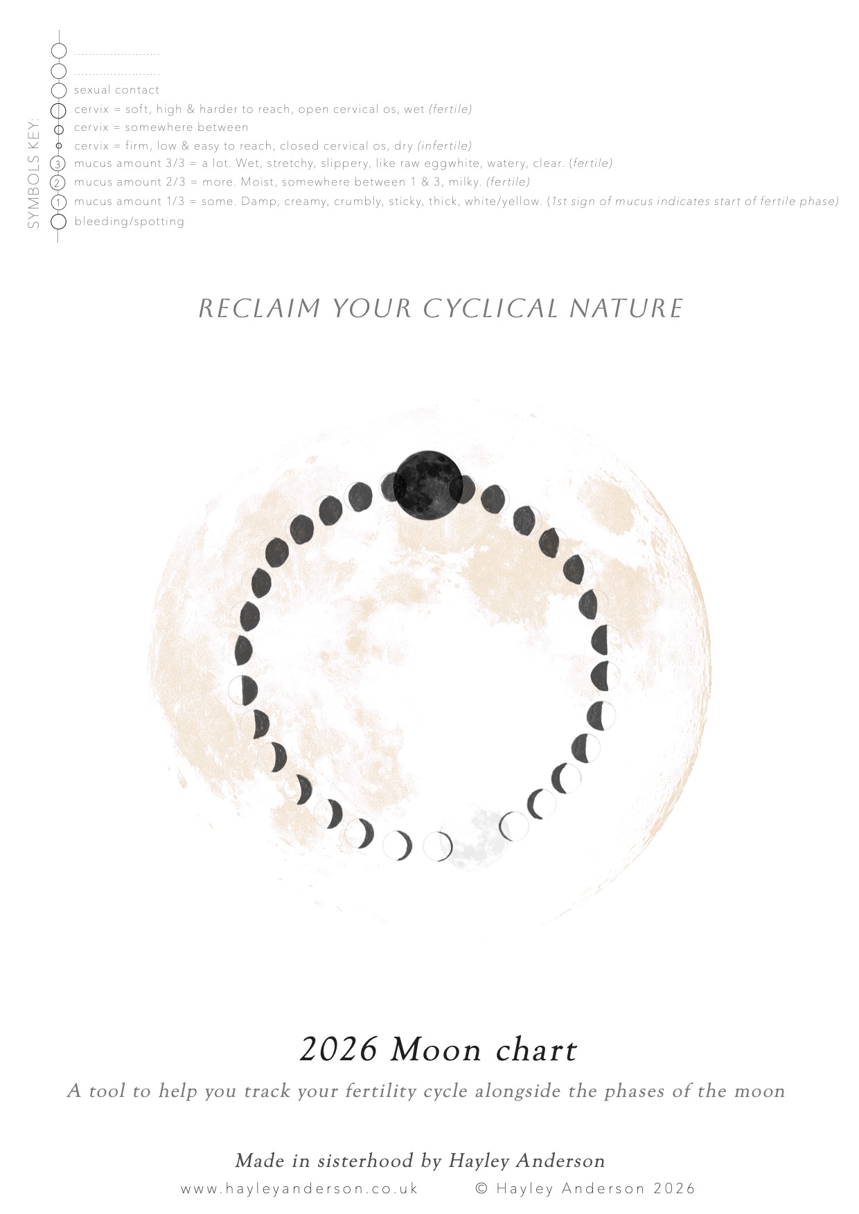 The moonchart calendar allows you to track your cycle using Natural Family Planning whilst also following lunar cycles.